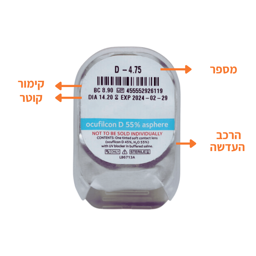 | חומר | Ocufilcon D (הידרוג’ל) |